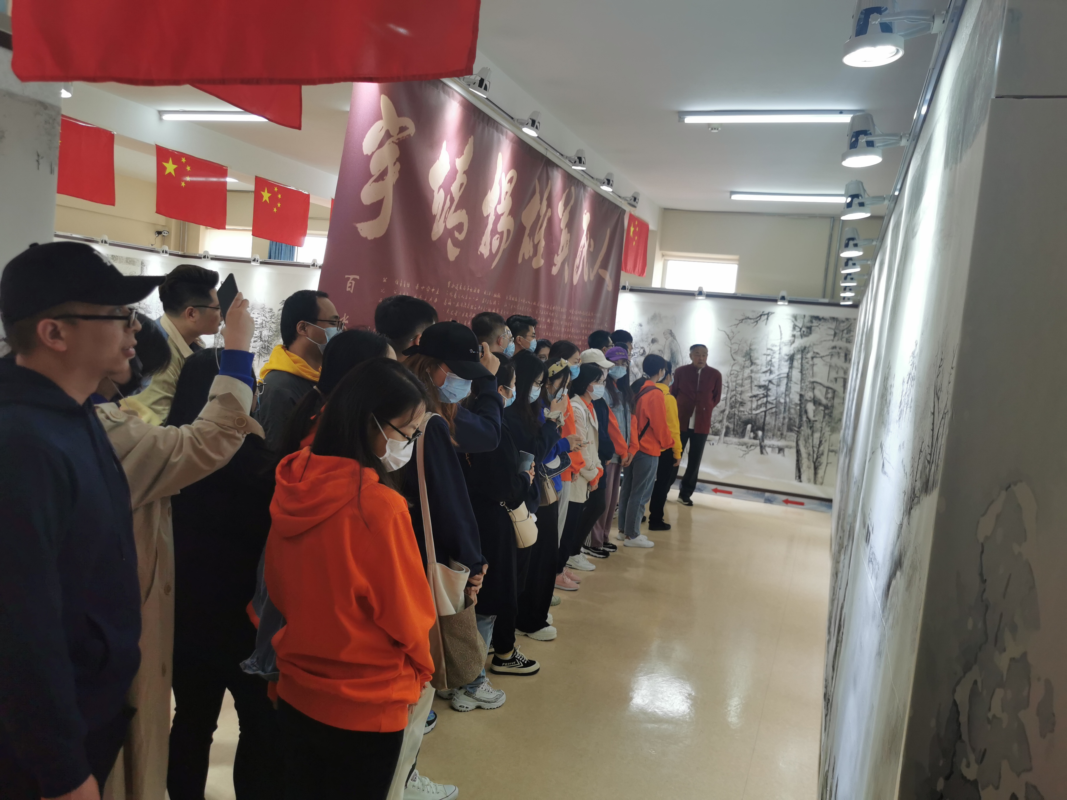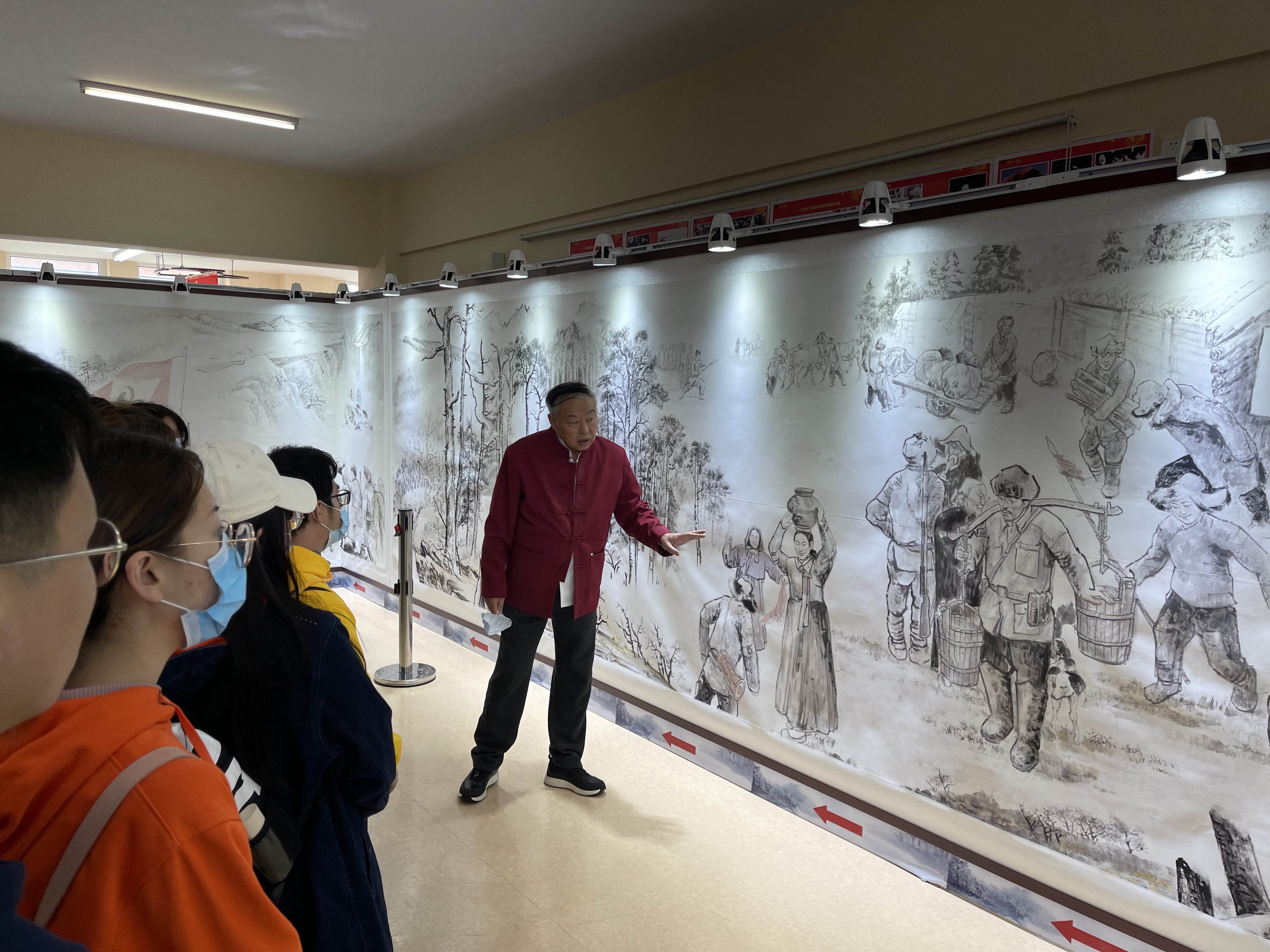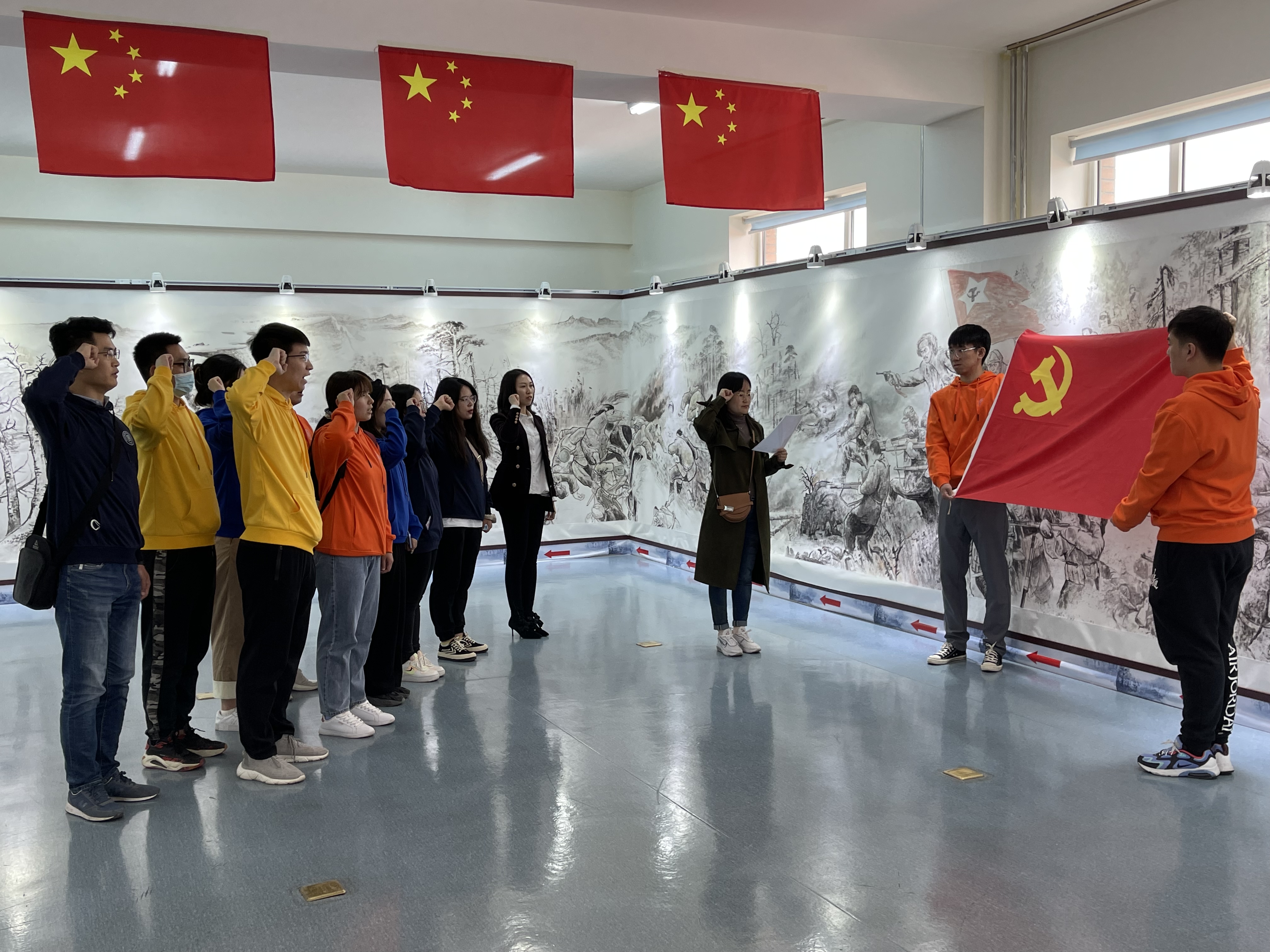 参观现场,画卷主创人赵明仁老师对画卷内容及创作缘由、创作过程进行了生动、深情的讲述。看着栩栩如生的画面,听着英雄的故事,同学们从日军侵华到东北人民团结在以抗日英雄杨靖宇为代表的同志身边共同抗日,再到叛徒出卖抗联军队、杨靖宇将军壮烈牺牲,身临其境地感受当时的悲壮场景。参观结束后,院党委组织在场党员面向党旗,重温入党誓词。党员们铿锵有力的誓言,感染了在场每一位积极分子。
