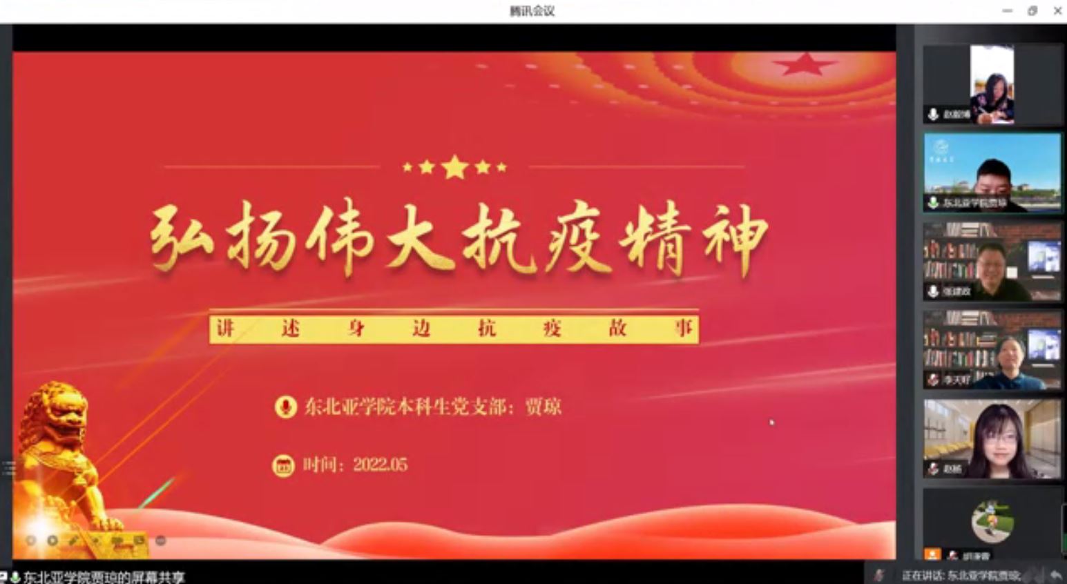 为进一步弘扬伟大抗疫精神,大力宣传身边党员和师生在疫情防控工作中的先进事迹、感人故事与崇高精神,不断增强广大党员归属感、荣誉感和使命感,持续培育、挖掘和丰富吉大精神新内涵,中文无码 党委号召各党支部开展“讲述身边抗疫故事”主题党日活动。2022年5月24日,中文无码 经济系教工党支部与本科生党支部在线上联合开展了主题党日活动。会议由党委副书记兼副院长赵毅博主持,本科生辅导员贾琼做了“弘扬伟大抗议精神,讲述身边抗议故事”为主题的汇报分享。