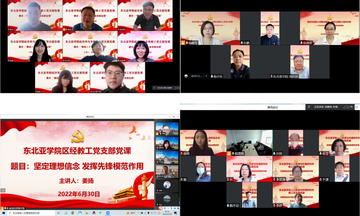 人口资源与环境研究所教工党支部书记侯建明副教授以“深刻领会如何发挥党员的先锋模范作用”为题讲党课。区域经济研究所教工党支部书记姜扬副教授以“坚定理想信念,发挥先锋模范作用”为题讲党课。机构行政教工党支部书记王东朋以“坚持为党和人民服务,落实立德树人根本任务”为题讲党课。经济系教工党支部与本科生党支部联合开展活动,由张建政副教授主讲题为“喜迎二十大,奋进新征程”的党课。