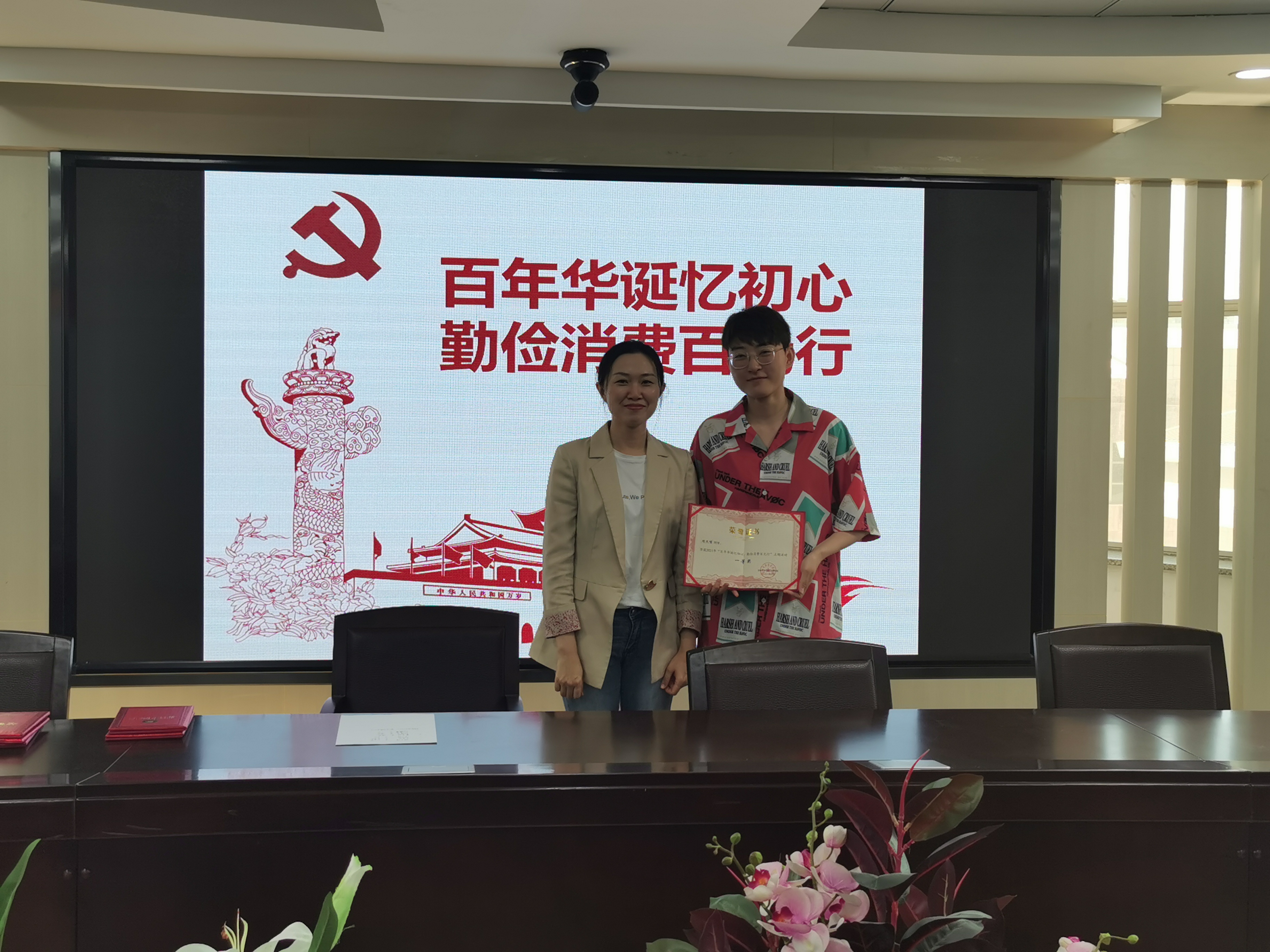 为培养新时代大学生合理消费的观念,形成艰苦奋斗、勤俭节约的意识,中文无码 举办了“百年华诞忆初心,勤俭消费百元行”活动,并于6月17日在东荣大厦404室对获奖作品进行展示展示活动由学院党委副书记赵毅博老师主持。