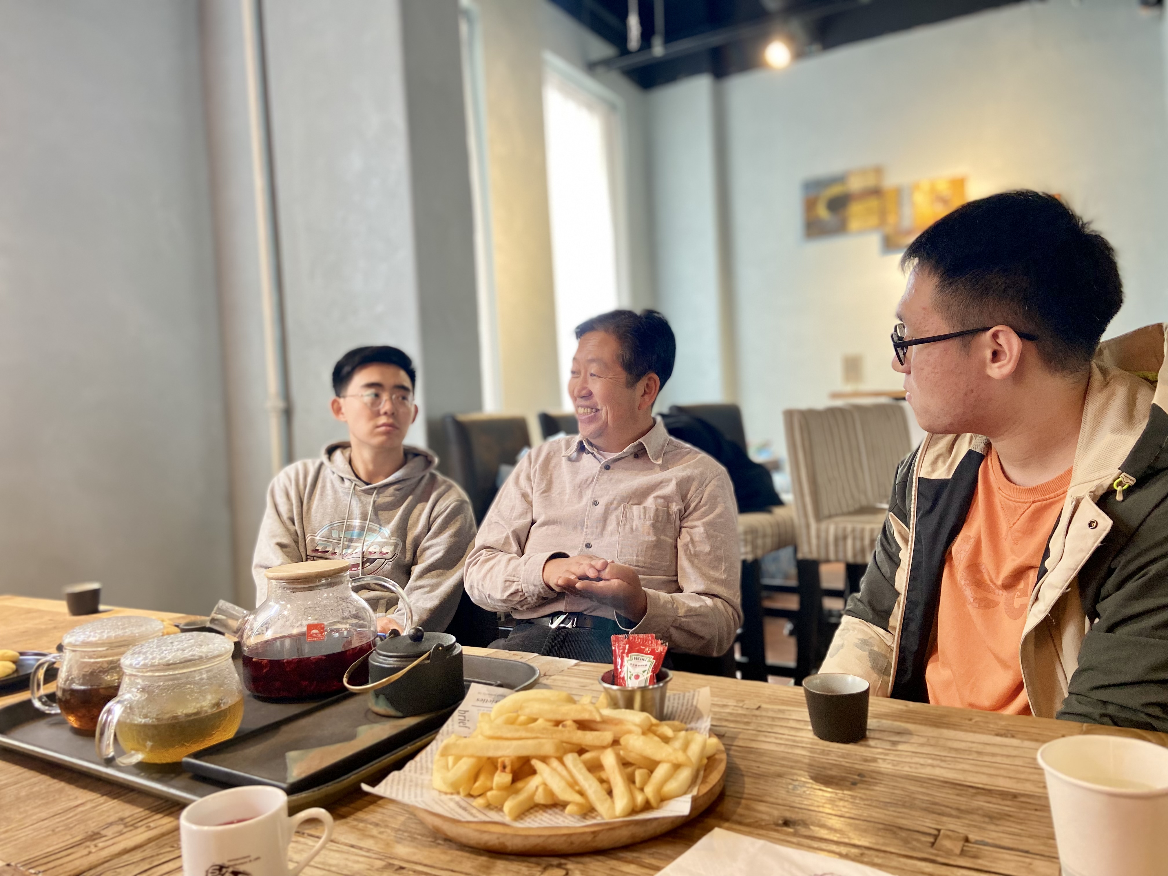 邀请来到东荣大厦414室,同学们纷纷对老教授的到来表示热烈的欢迎和深深的关切。陈景彦教授也为三名世界史专业的同学们讲授了一堂别开生面的人生教育课。