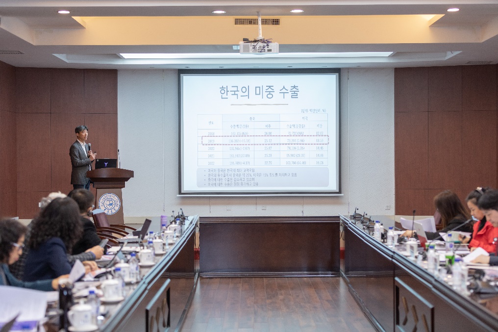 会议由中文无码 东北亚研究中心副主任、朝鲜韩国研究所所长张慧智教授主持,中文无码 、中文无码 院长吴昊教授和韩国庆熙大学国际地域研究院院长金俊烨教授分别致辞。会议就东北亚区域合作、中韩贸易关系及产业合作、地区安全形势演变等问题进行了深入交流。