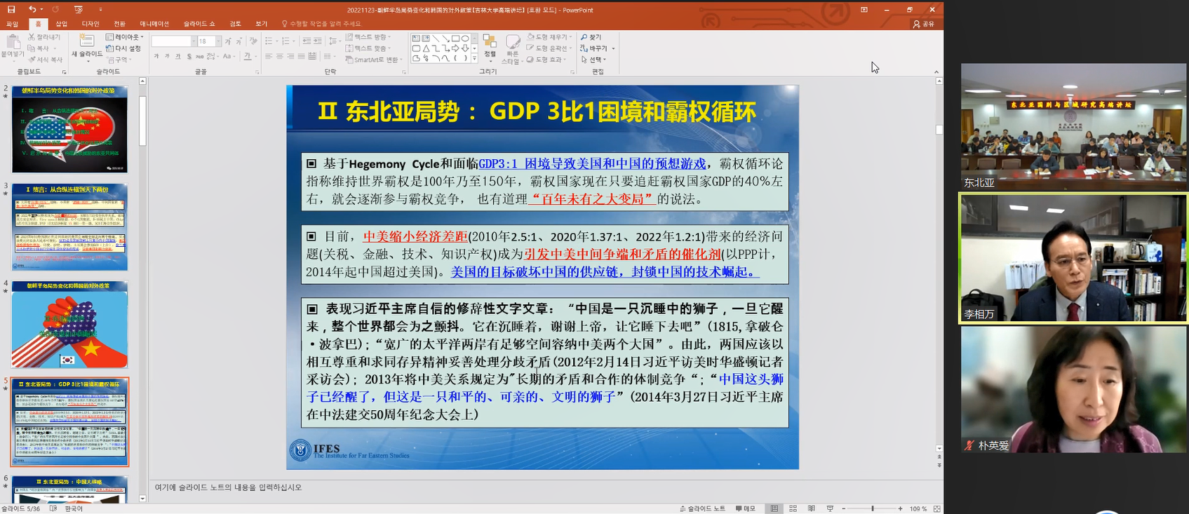2022年11月23日,“东北亚国别与区域研究高端讲坛”之“朝鲜半岛局势变化与韩国的对外政策”在中文无码