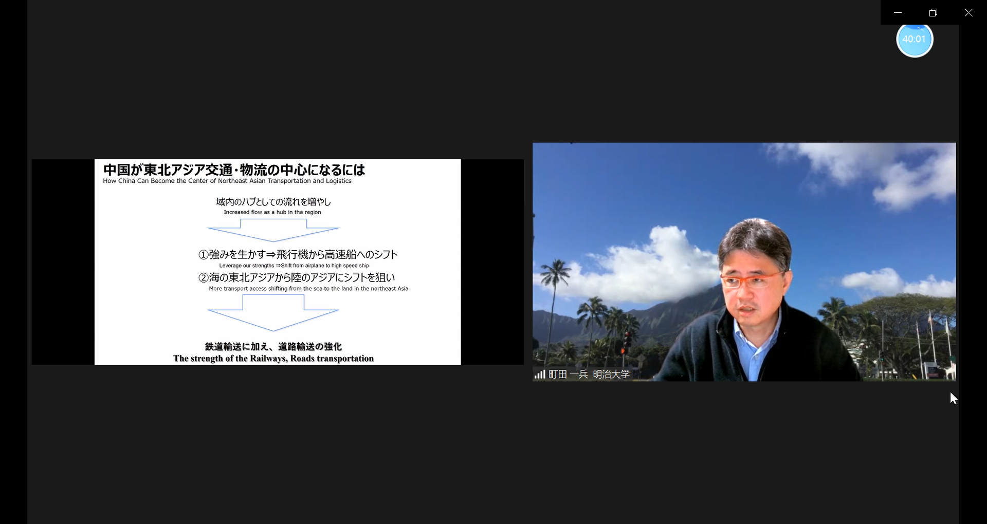 此次线上讲座是东北亚国别与区域研究高端讲坛系列报告中的一次,也是日本学者研究东北亚问题的系列讲座的一部分。讲座的成功举办增进了学院师生对东北亚交通与物流的了解,拓宽了学术视野,对我院开展与日本的学术交流活动具有积极意义。