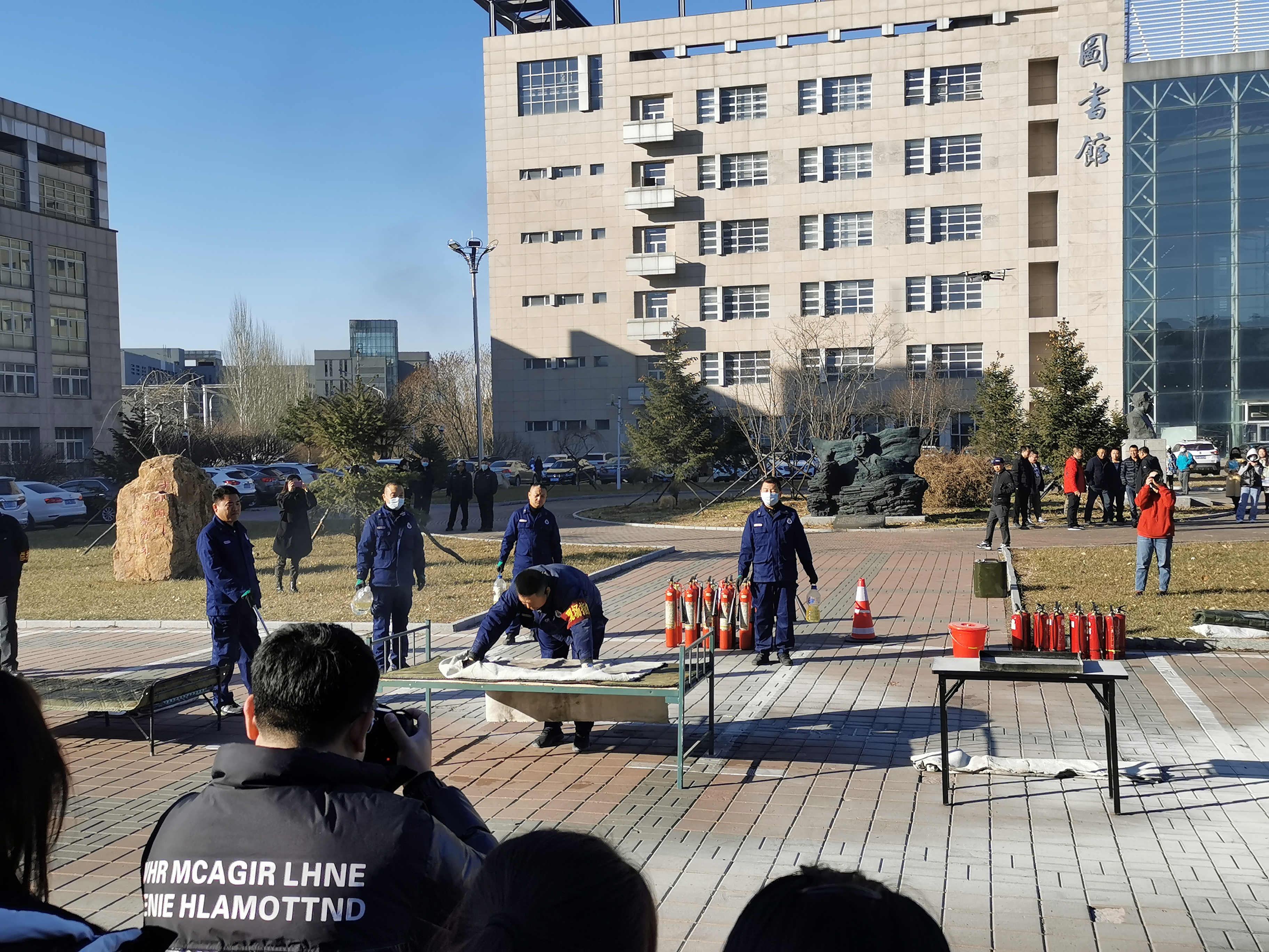随着东荣大厦模拟火情的发生,消防安全应急疏散演练正式开始。全体师生按照消防广播和工作人员的指挥下紧急疏散,用湿毛巾遮掩口鼻,低姿穿过浓烟,沿着楼梯通道快速、有序地撤离,安全到达疏散的指定地点。随后,保卫处消防科工作人员为师生示范正确使用灭火器材的方法,并教会学生正确使用二氧化碳灭火器、灭火毯,让学生亲自动手灭火,在操作中熟练掌握灭火技巧。