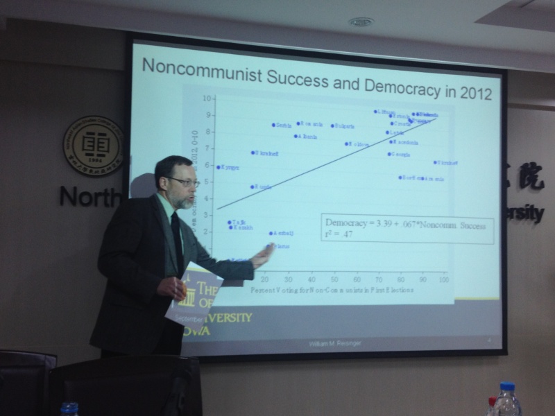 爱荷华大学是美国著名的国家级研究型大学,其在政治学,商学,文学等人文社会科学领域取得的成就在全美及世界享有盛誉,是美国公认的“公立常春藤大学”之一。威廉·瑞辛格教授美国爱荷华大学政治系终身教授,美国政治学会和斯拉夫与东欧研究会成员。2003—2008年曾任爱荷华大学主管外事副教务长(副校长),国际项目主任。2010—2012年任爱荷华大学政治系主任,2012年 至今任美国富布赖特项目委员会委员,爱荷华市外交事务委员会委员。主要从事俄罗斯政治与外交政策,前苏联地区国别政治,比较政治学等方面的研究。是美国著 名的俄罗斯问题专家和比较政治学专家。此次访问我院期间,瑞辛格教授为我院师生举行了两场精彩纷呈的学术报告,受到广大师生的热烈欢迎。
