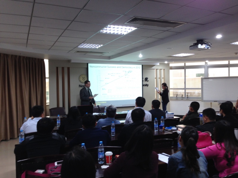 在9月22日题为《普京的威权政体与俄罗斯的未来》的名家讲座中,瑞辛格教授通过分析普京政府存在的“人格化政体”的特点,分析了这一特点对于普京的政府未来国内国外政策的影响,并对俄罗斯未来数年国家政策,对外交往等方面的走向进行了深入系统的分析。在9月23日题为《美国政治科学研究方法》的专题讲座中,瑞辛格教授为国际政治研究所师生系统介绍了美国学界对于在政治科学研究方面所采用的研究方法与研究思路,解释了政治科学的科学性,既政治科学不仅仅是对事件的简单描述,还需要运用理论加以解释,同时政治科学的研究也要经历“提出问题、回答问题并找出已知理论的不足”的过程。