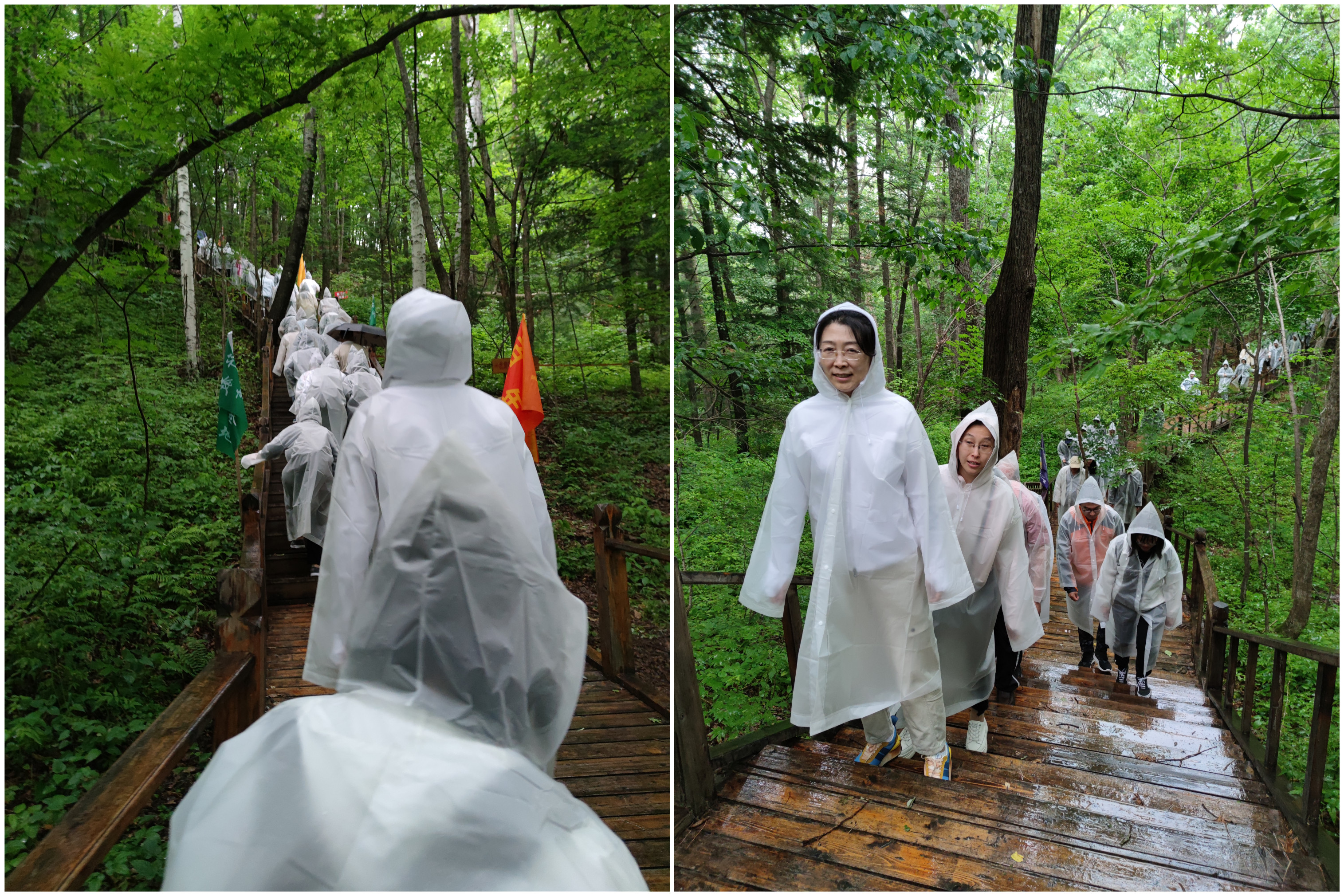 陈翰章烈士陵园现场教学后,学员们在细雨中前往寒葱岭教育基地,追寻抗联战士足迹,实地体验抗联战士的生活,缅怀战火峥嵘岁月,珍惜眼前和平幸福的生活,让信仰之光在革命精神激励下熠熠生辉。寒葱岭红色教育基地是著名寒葱岭伏击战的主战场,是迄今为止发现保存最完整、作战痕迹最清晰的东北抗联密营核心遗址,是东北抗联长期战斗和生活的重要核心区域,寒葱岭密营文化展览馆,包括东北沦陷,奋起抗战;联军组建、共赴国难;血洒白山、英魂长存;侵华史料,铁证如山;密营遗址,民族记忆。馆内藏有大量珍贵的历史照片,文献史料和抗联遗物,再现了东北抗日联军宁死不屈、百折不挠的民族气节。