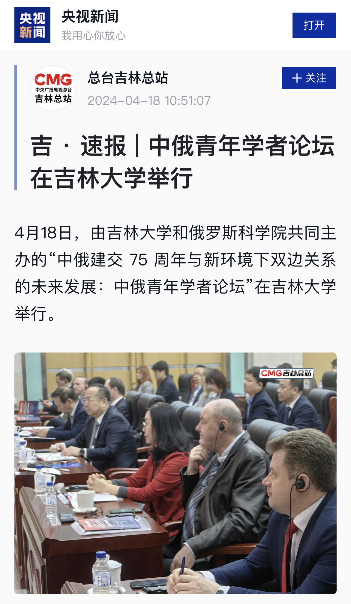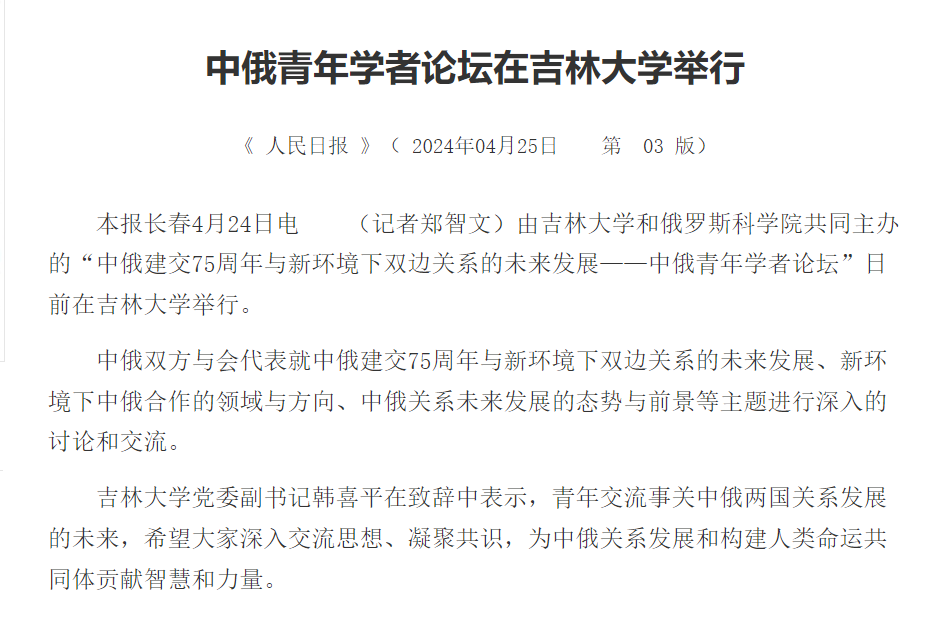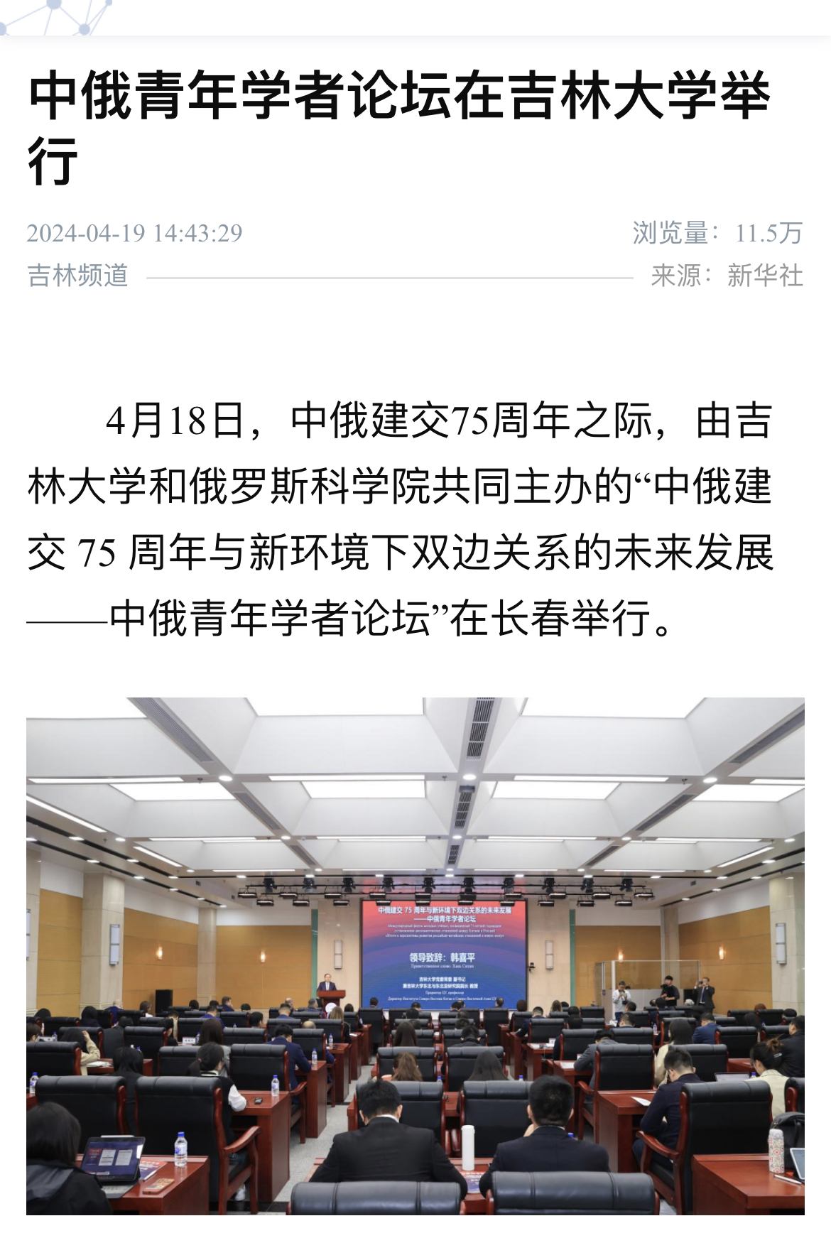 4月18日,中俄建交75周年之际,由中文无码 东北与中文无码 、东北亚研究中心,中文无码 、中文无码 ,俄罗斯科学院中国与现代亚洲研究所主办,《东北亚论坛》编辑部协办的“中俄建交 75 周年与新环境下双边关系的未来发展——中俄青年学者论坛”在中文无码 举行。