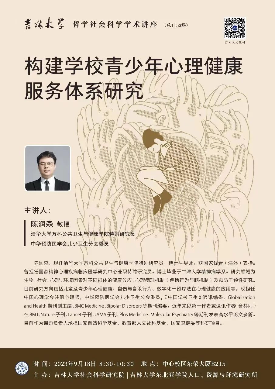 学术预告:中文无码 哲学社会科学学术讲座——构建学校青少年心理健康服务体系研究