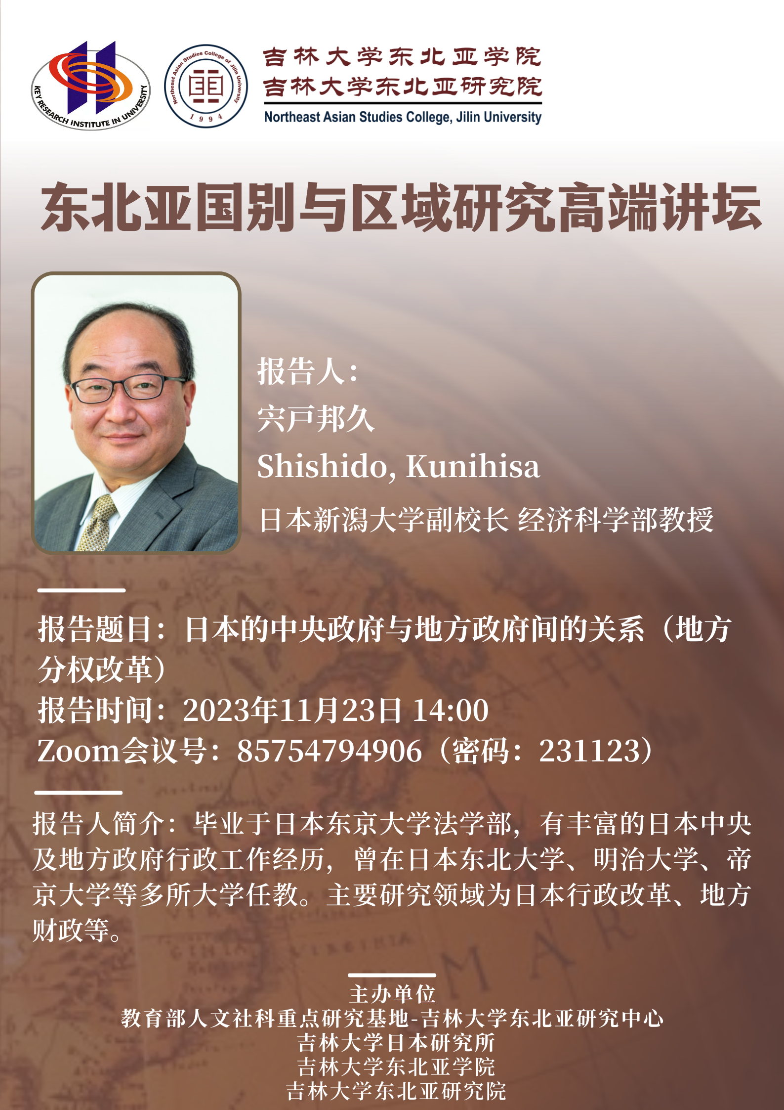 学术预告:东北亚国别与区域研究高端讲坛(2023年第25场)——日本的中央政府与地方政府间的关系(地方分权改革)