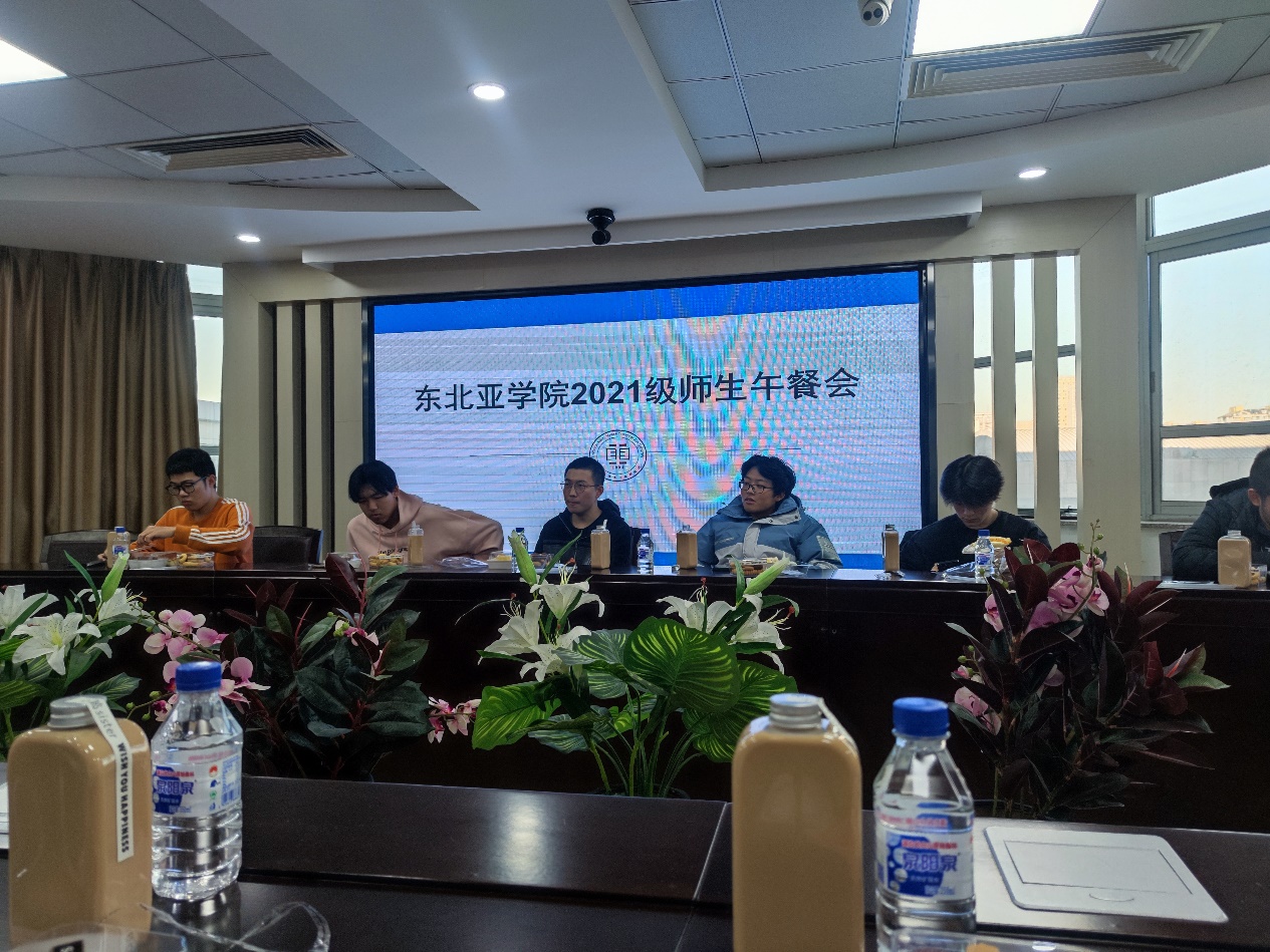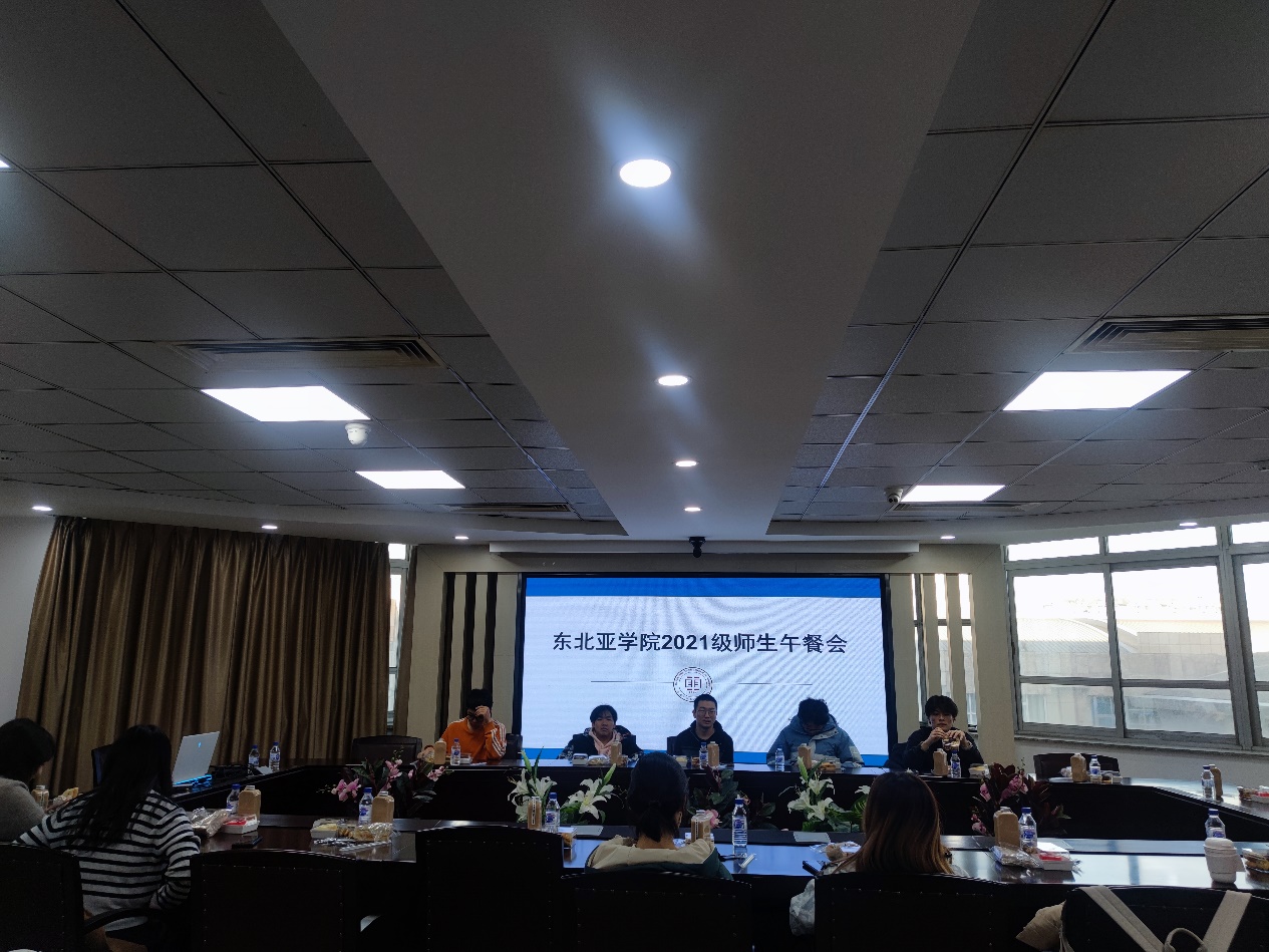 为深入了解我院2021级本科生步入大三年级后学习生活各方面的反馈,使学生们对毕业后安排提前思考和规划,及时为同学们答疑解惑,学院于10月27日中午在东荣大厦404会议室举办了“东北院学院2021级师生午餐会”。学院经济系李天籽老师、赵杨老师,本科生辅导员贾琼老师以及2021级本科生代表参与了此次冷藏会。