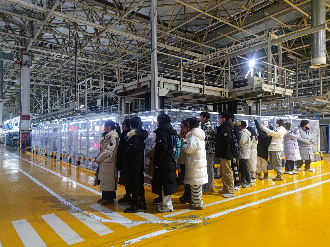 讲解员详细地为同学们介绍和科普了关于汽车制造的知识、汽车工厂的流水线技术、质量管理体系等内容,零距离认识了一汽-大众的先进生产模式,感受了智能制造的魅力。讲解员诙谐幽默、声情并茂的讲解让同学们在轻松愉快的氛围中了解了汽车的组装过程。